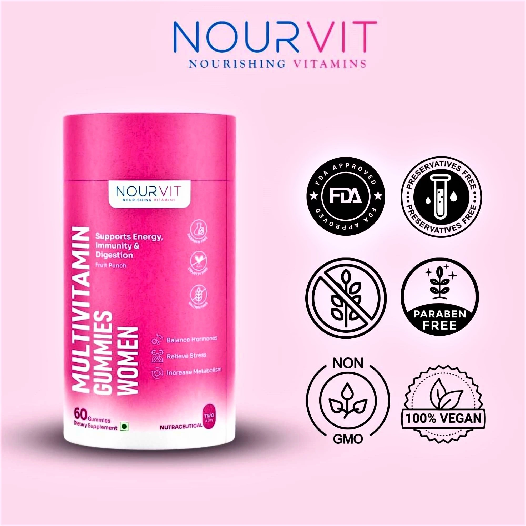 Daily health made fun with Nourvit Women Multi-Vitamin Gummies. Taste the wellness!