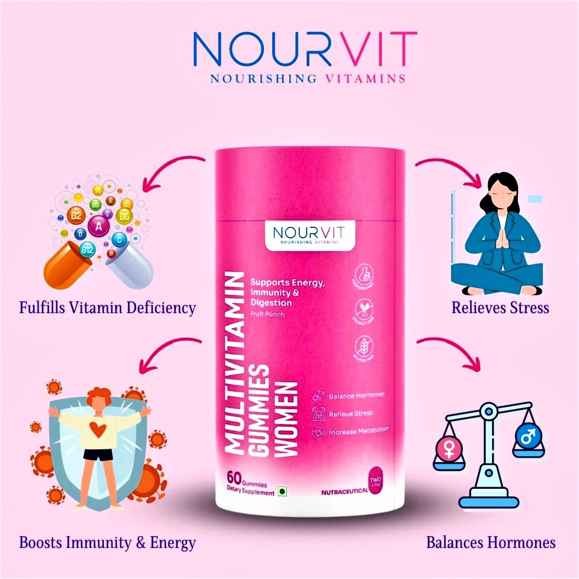 Balancing hormones and boosting vitality. Nourvit Women Gummies, my flavorful wellness routine.