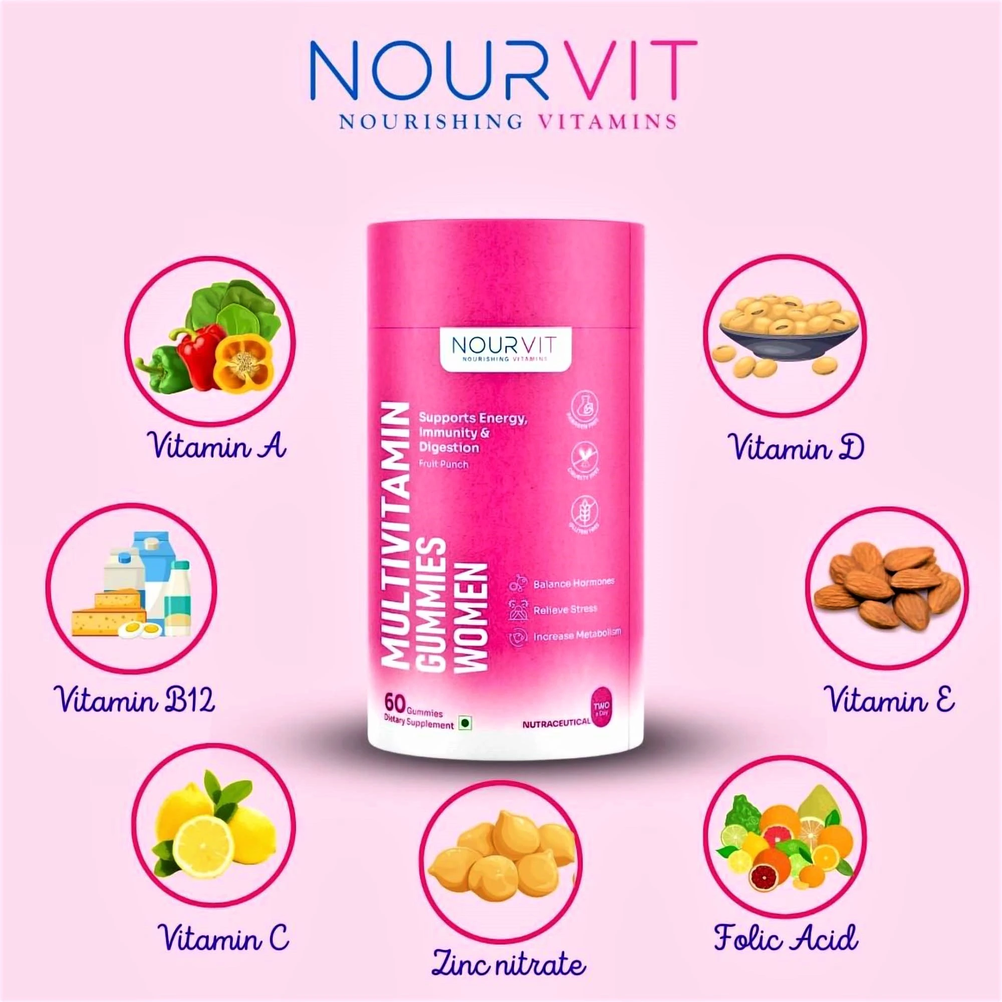 Essential vitamins in a delicious package. Nourvit Women Gummies, my daily health indulgence.